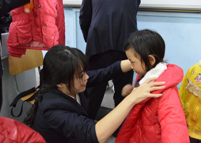 為了能讓每個孩子都能擁有禮物,愛心志愿者們讓孩子們排好隊,精心幫孩子們挑選適合的衣服。天信儀表集團黨委副書記鄭成平找到一件紅色羽絨服,在排在最前面的小女孩身上比試了一下:這件衣服很漂亮,我來幫你穿。小女孩乖巧的配合,并用稚嫩的童聲說了聲謝謝叔叔,穿好后一路蹦蹦跳跳的回到了自己位置上。志愿者陳書球是位20多歲的小伙子,還未婚,這是他第一次給小孩子穿衣服,難免有點笨手笨腳,但是穿得特別細心。志愿者黃君長相甜美,受到了孩子的喜愛,當她拿起一件外套這件衣服有沒有哪位同學想試穿下?孩子們馬上爭相恐后地舉手:我要!我要!!我也要穿!。看著孩子們臉上一個個洋溢著開心的笑容,愛心志愿者也發自心底的感到快樂和開心。