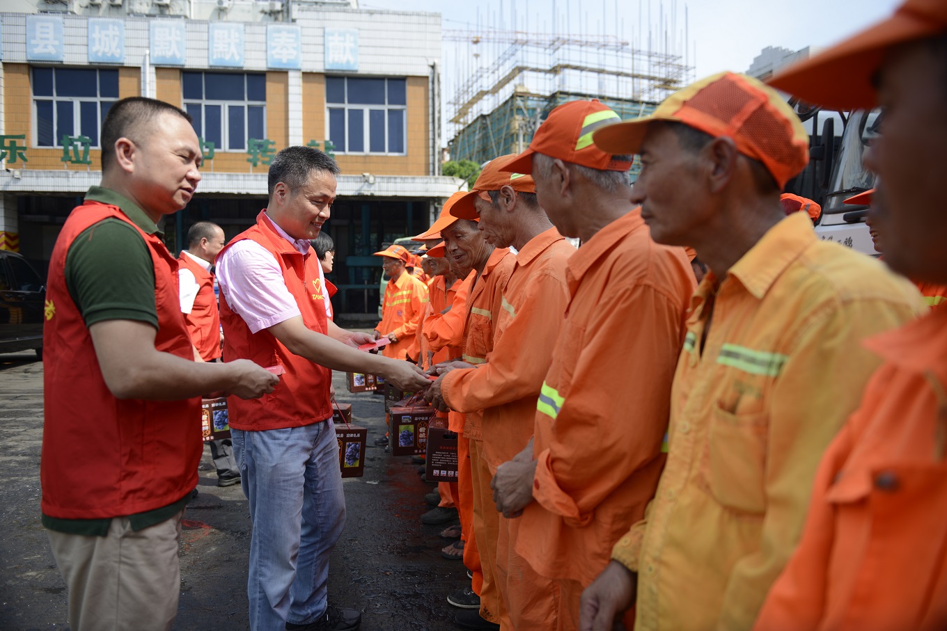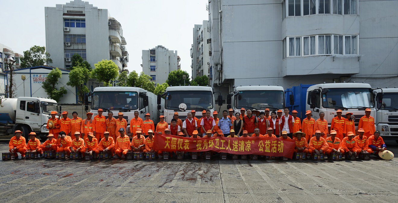對(duì)環(huán)衛(wèi)工人的關(guān)愛,體現(xiàn)了一個(gè)城市的文明程度,這不是表現(xiàn)在口頭上,而是體現(xiàn)在具體的行動(dòng)中。為了號(hào)召?gòu)V大市民講文明、樹新風(fēng),共同參與城市環(huán)境衛(wèi)生建設(shè),同時(shí)緩解、分擔(dān)環(huán)衛(wèi)工人的工作壓力,天信儀表集團(tuán)有限公司黨工團(tuán)婦于今年夏季再一次發(fā)起;我為環(huán)衛(wèi)工人送清涼;的微公益活動(dòng)。