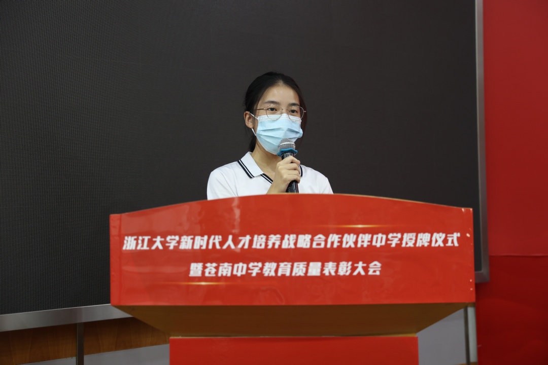 來自高三(1)班學生代表全體獲獎學生向天信儀表集團有限公司和蒼南縣新華書店有限公司表示最誠摯的謝意。學生們獲得的不僅僅是物質的幫助,更多是愛心的感知,精神的豐富,還有在雨中黑夜中翩翩起舞的勇氣。未來在世界的各個角落,他們定會用累累碩果回饋社會,用滿腔真誠鼓勵更多在雨中躊躇的舞者。