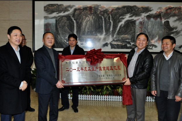 本網訊:新年上班的第一天,縣委書記黃壽龍、縣人大常委會主任蘇慶明、副縣長黃錦耀等領導來到天信儀表集團,為企業送上2014年度工業產值首超5億元牌匾和新年美好的祝愿。